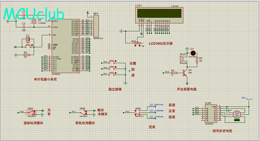 注意:部分实物元器件仿真中没有,仿真中会用其他工作原理相似的元件代替,这样可能导致实物程序和仿真程序不一样