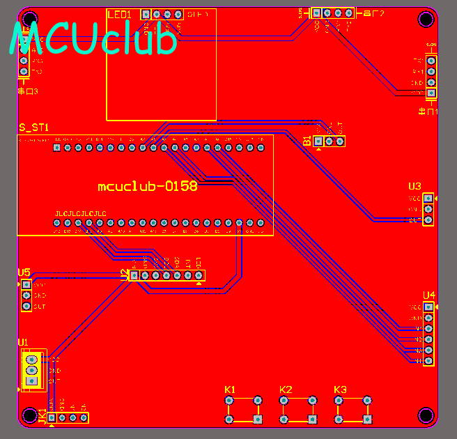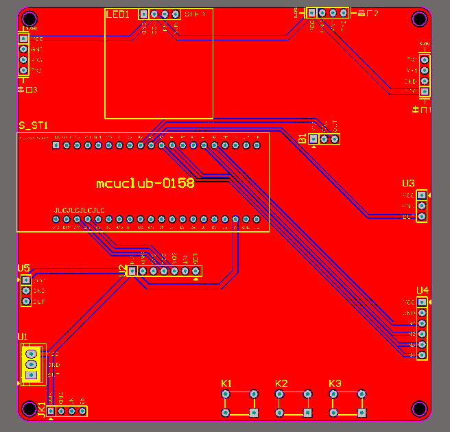注意:PCB图中间有一个项目编号,隐藏在单片机底座下,插入单片机后不会看到。如果想截没有项目编号的PCB图,可在PCB源文件中点击删除。另外,如果想在实物PCB板上加自己的信息(比如日期、学号、姓名等),可联系客服。