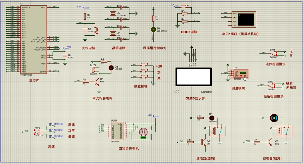 注意:部分实物元器件仿真中没有,仿真中会用其他工作原理相似的元件代替,这样可能导致实物程序和仿真程序不一样