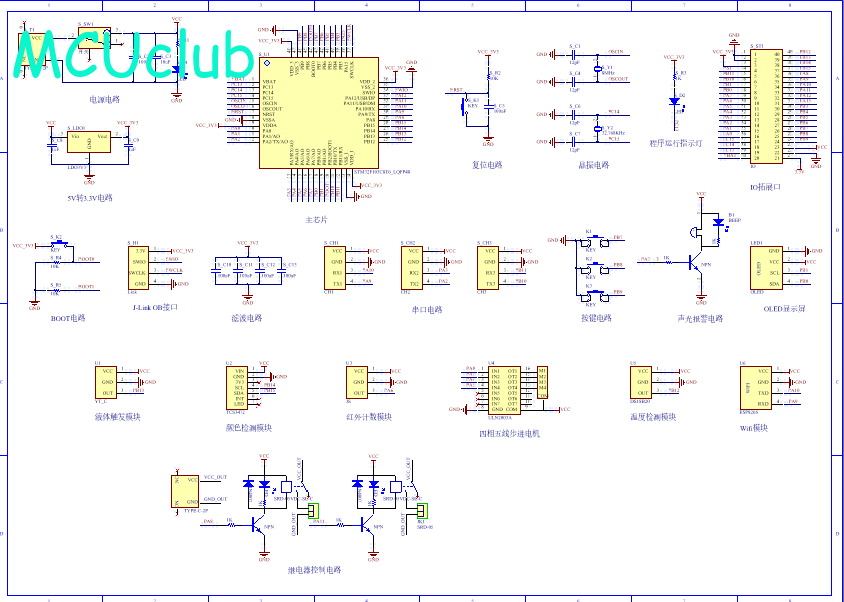 PCB图是由原理图导出,封装很大一部分都是作者自己绘制,不提供封装库,只提供连接好的源文件,可以直接在嘉立创进行打板。两层板,上下覆铜接地。