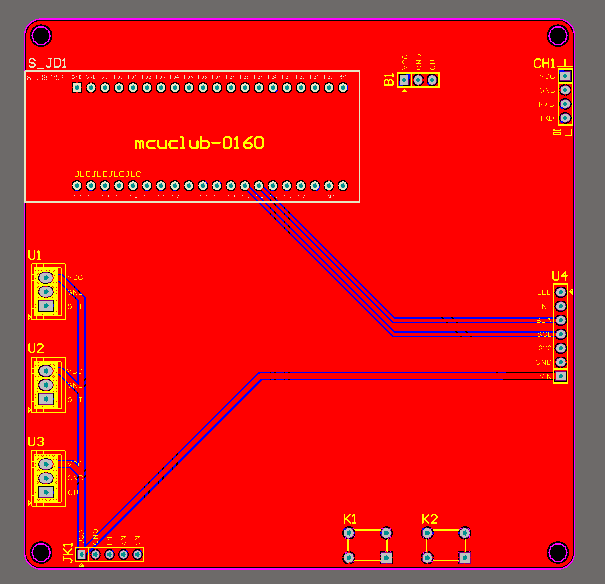 底板:底板在嘉立创进行打板,为绿色PCB板,两层板,厚度1.2,上下覆铜接地。元器件基本上为插针式,个别降压芯片会使用贴片式。