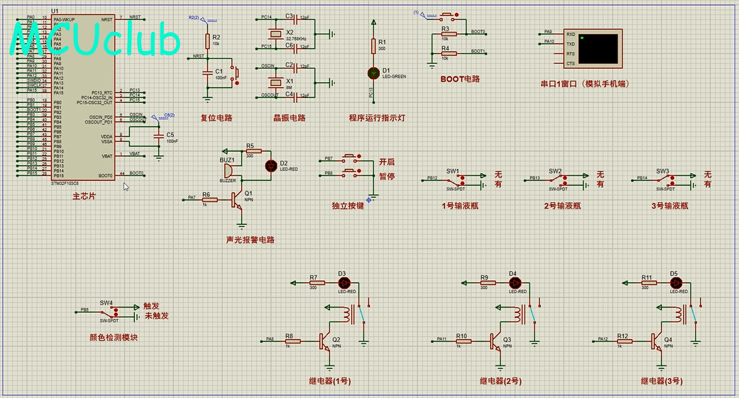 注意:部分实物元器件仿真中没有,仿真中会用其他工作原理相似的元件代替,这样可能导致实物程序和仿真程序不一样