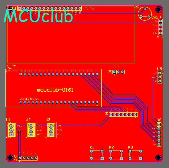 注意:PCB图中间有一个项目编号,隐藏在单片机底座下,插入单片机后不会看到。如果想截没有项目编号的PCB图,可在PCB源文件中点击删除。另外,如果想在实物PCB板上加自己的信息(比如日期、学号、姓名等),可联系客服。