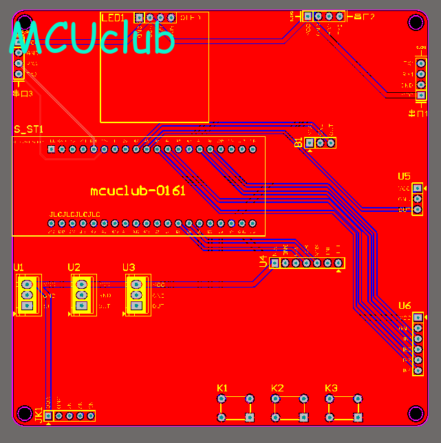 注意:PCB图中间有一个项目编号,隐藏在单片机底座下,插入单片机后不会看到。如果想截没有项目编号的PCB图,可在PCB源文件中点击删除。另外,如果想在实物PCB板上加自己的信息(比如日期、学号、姓名等),可联系客服。