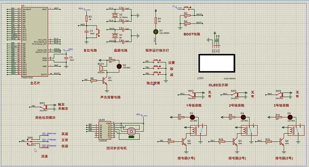 注意:部分实物元器件仿真中没有,仿真中会用其他工作原理相似的元件代替,这样可能导致实物程序和仿真程序不一样