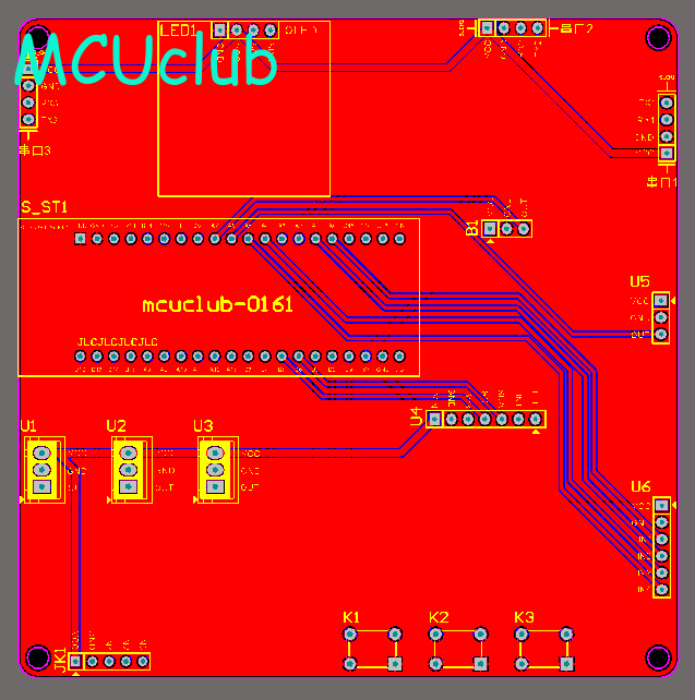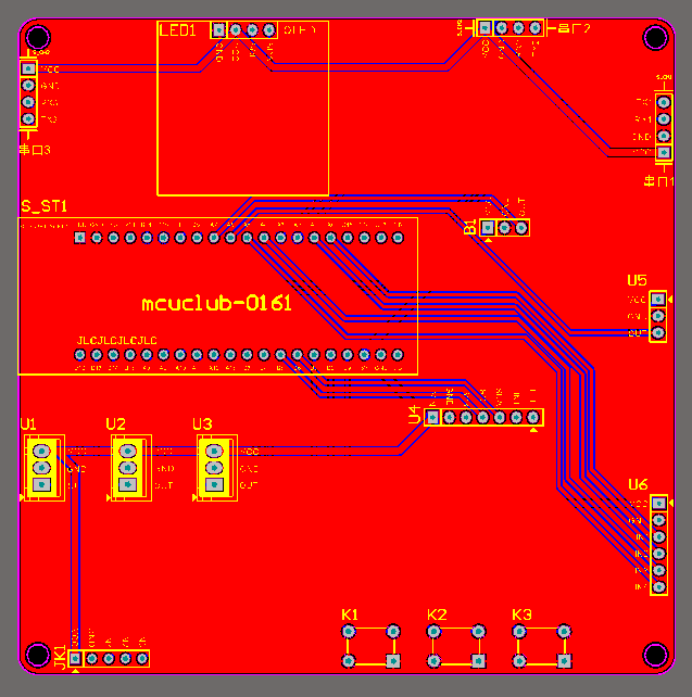 注意:PCB图中间有一个项目编号,隐藏在单片机底座下,插入单片机后不会看到。如果想截没有项目编号的PCB图,可在PCB源文件中点击删除。另外,如果想在实物PCB板上加自己的信息(比如日期、学号、姓名等),可联系客服。