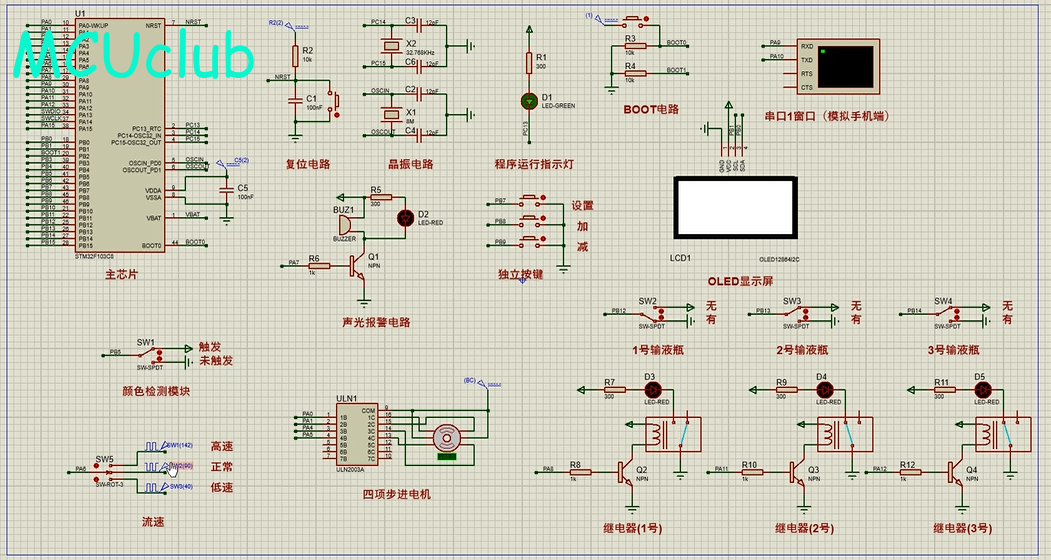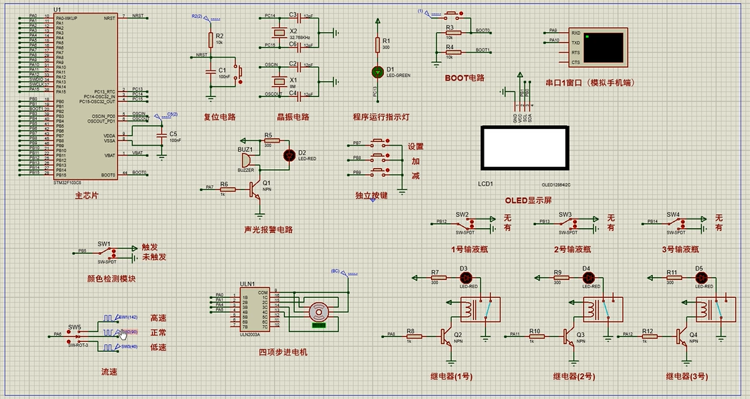 注意:部分实物元器件仿真中没有,仿真中会用其他工作原理相似的元件代替,这样可能导致实物程序和仿真程序不一样