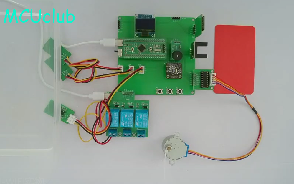 2、通过继电器带动夹子模拟是否开启相应输液瓶(当启动1号输液瓶时,1号继电器断开,其他号的继电器闭合夹住,依次类推)