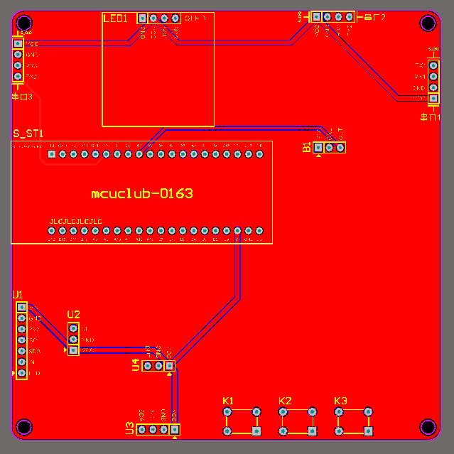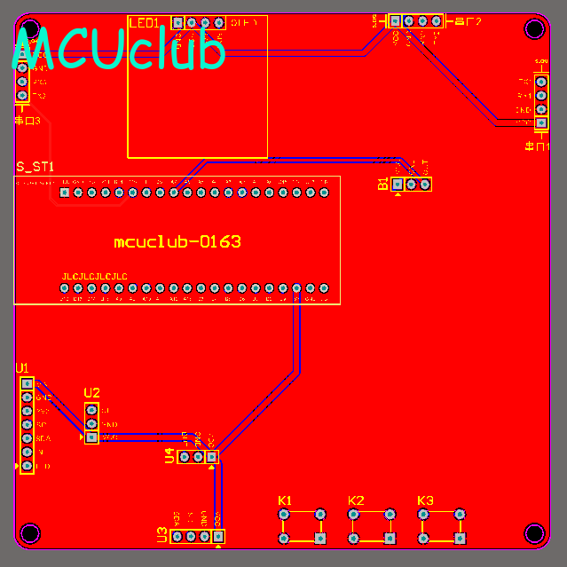 注意:PCB图中间有一个项目编号,隐藏在单片机底座下,插入单片机后不会看到。如果想截没有项目编号的PCB图,可在PCB源文件中点击删除。另外,如果想在实物PCB板上加自己的信息(比如日期、学号、姓名等),可联系客服。
