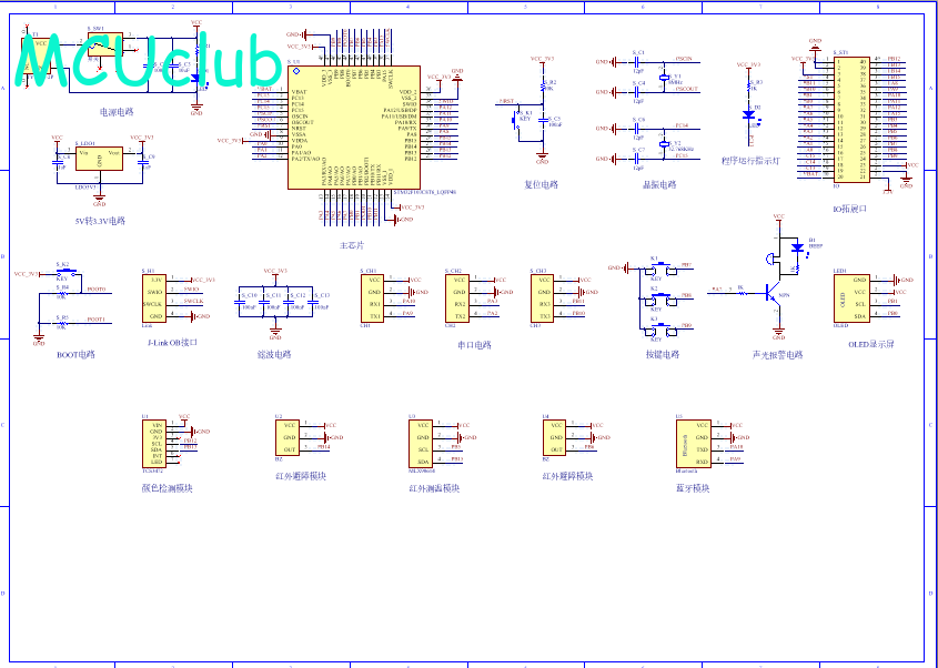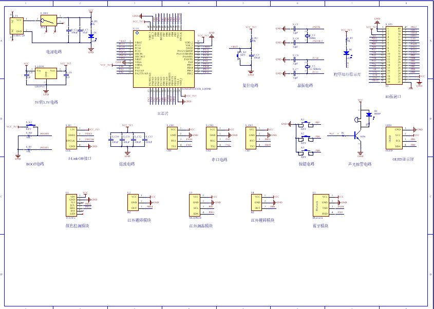 PCB图是由原理图导出,封装很大一部分都是作者自己绘制,不提供封装库,只提供连接好的源文件,可以直接在嘉立创进行打板。两层板,上下覆铜接地。
