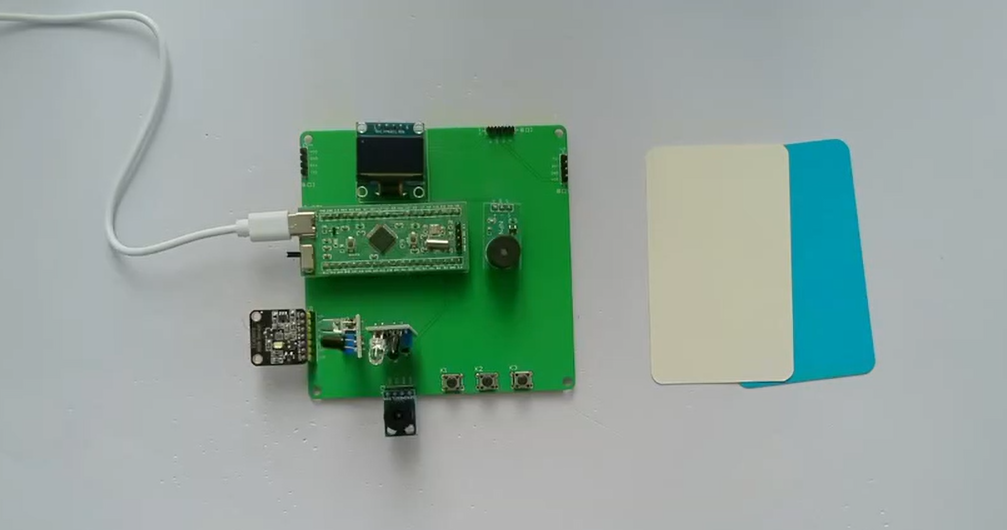 1、通过颜色传感器识别口罩颜色(蓝色、白色)配合红外避障管检测人是否佩戴口罩,如果监测到未带口罩,声光报警提醒