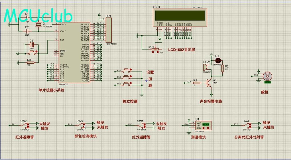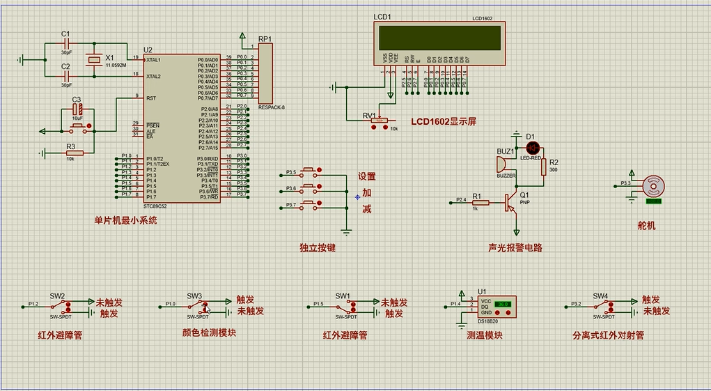 注意:部分实物元器件仿真中没有,仿真中会用其他工作原理相似的元件代替,这样可能导致实物程序和仿真程序不一样