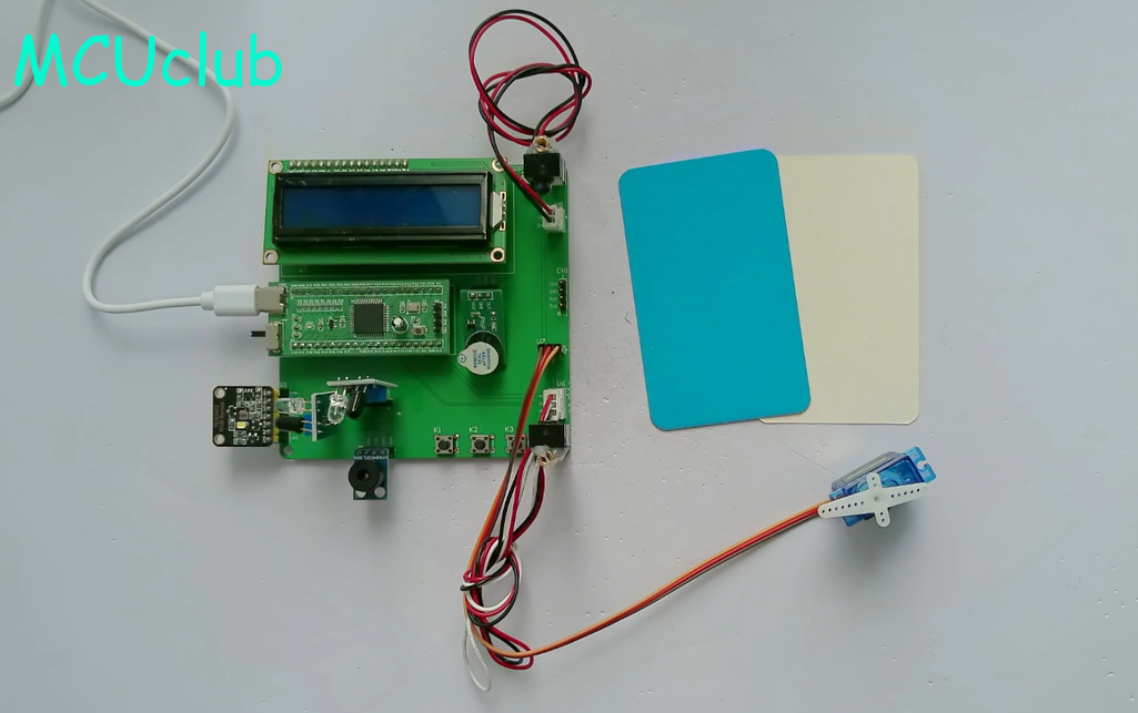 1、通过颜色传感器识别口罩颜色(蓝色、白色)配合红外避障管检测人是否佩戴口罩,如果监测到未带口罩,声光报警提醒