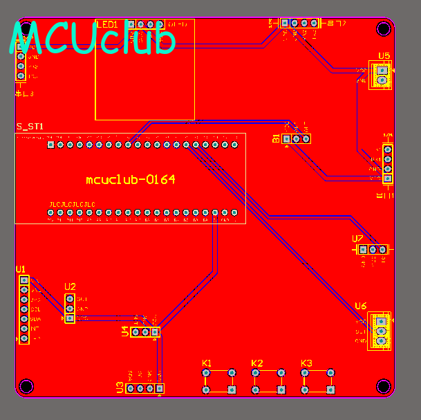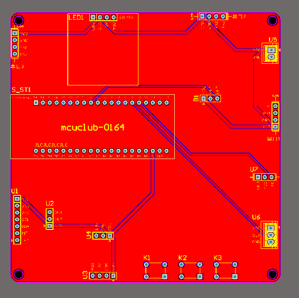 注意:PCB图中间有一个项目编号,隐藏在单片机底座下,插入单片机后不会看到。如果想截没有项目编号的PCB图,可在PCB源文件中点击删除。另外,如果想在实物PCB板上加自己的信息(比如日期、学号、姓名等),可联系客服。