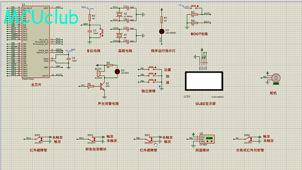 注意:部分实物元器件仿真中没有,仿真中会用其他工作原理相似的元件代替,这样可能导致实物程序和仿真程序不一样