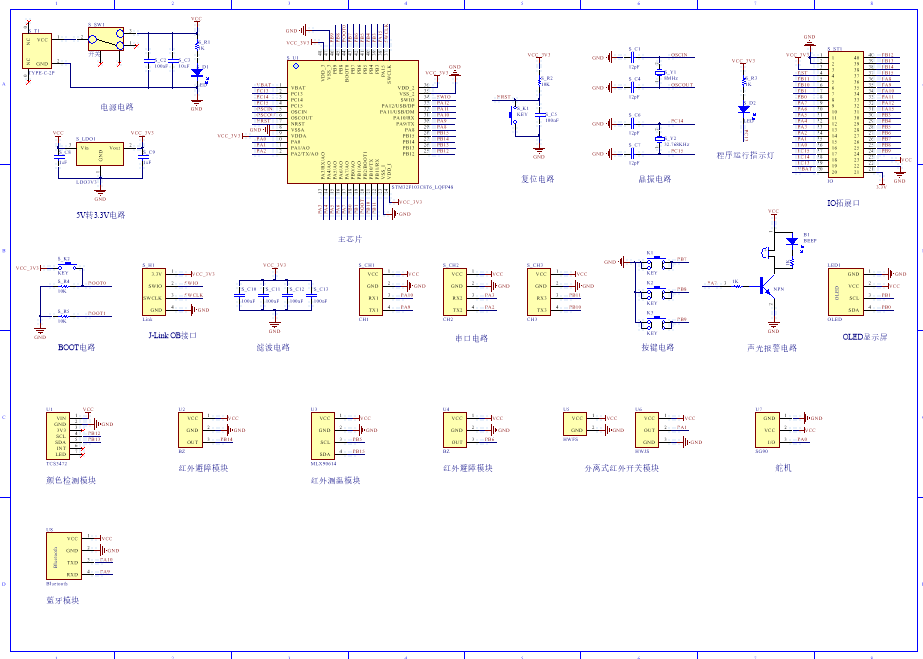 PCB图是由原理图导出,封装很大一部分都是作者自己绘制,不提供封装库,只提供连接好的源文件,可以直接在嘉立创进行打板。两层板,上下覆铜接地。