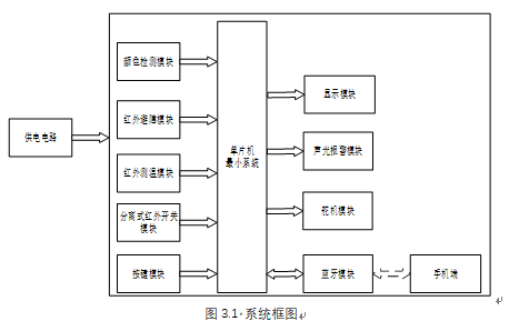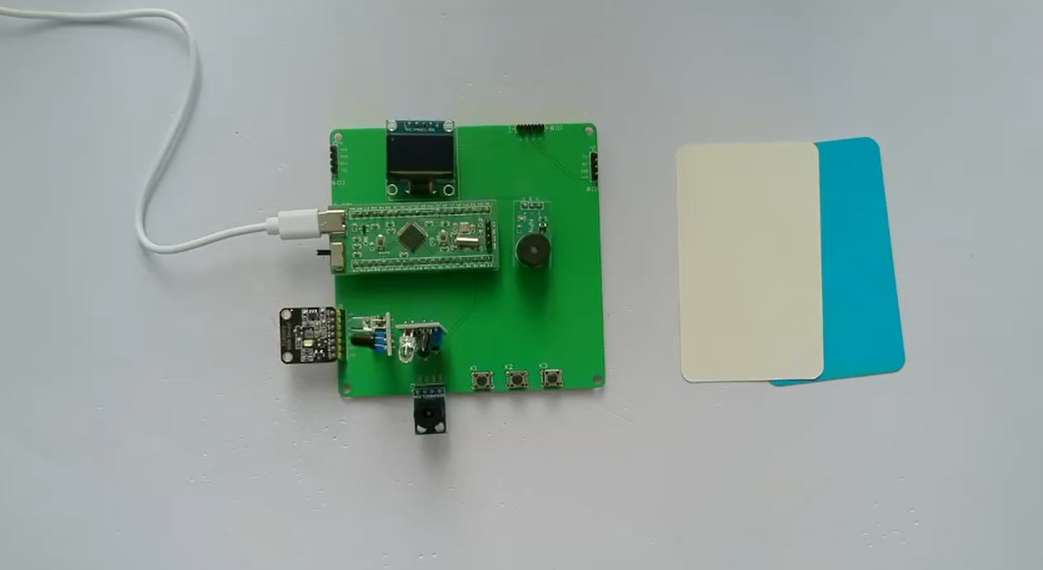1、通过颜色传感器识别口罩颜色(蓝色、白色)配合红外避障管检测人是否佩戴口罩,如果监测到未带口罩,声光报警提醒