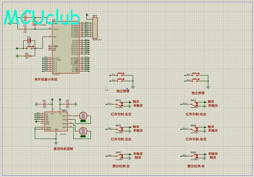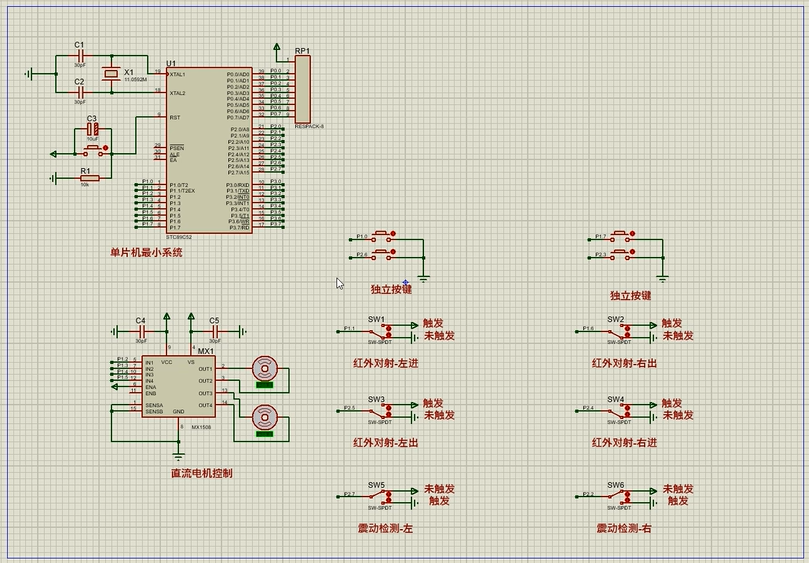 注意:部分实物元器件仿真中没有,仿真中会用其他工作原理相似的元件代替,这样可能导致实物程序和仿真程序不一样