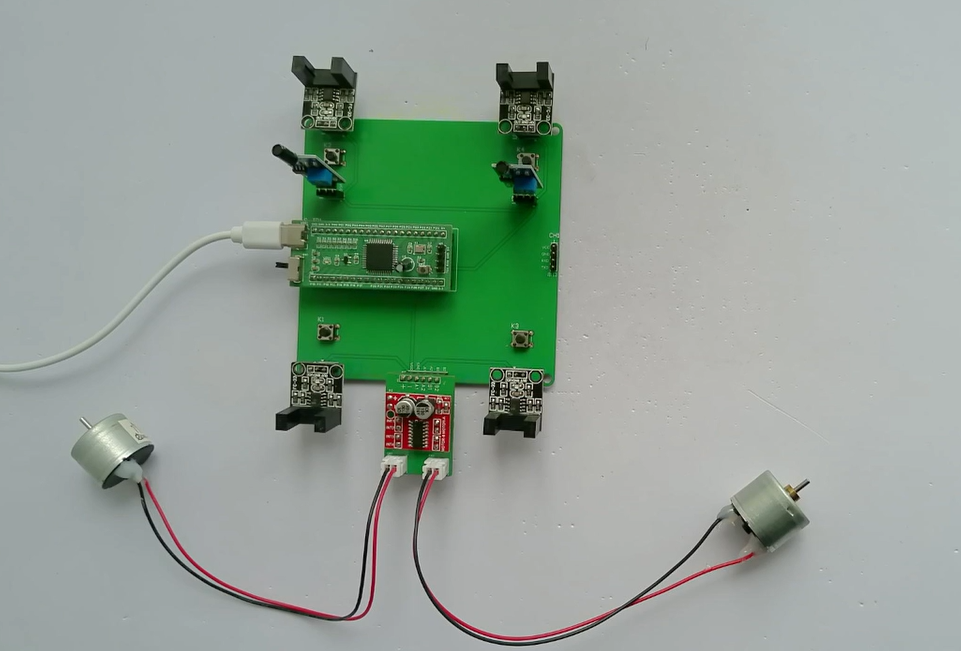 1、通过MX1508驱动两个直流电机模拟上下扶梯(一个正转代表上行,一个反转代表下行)