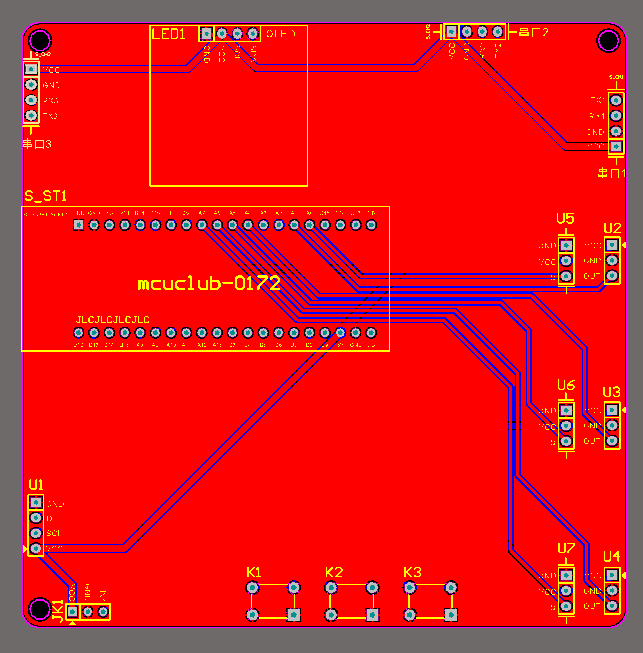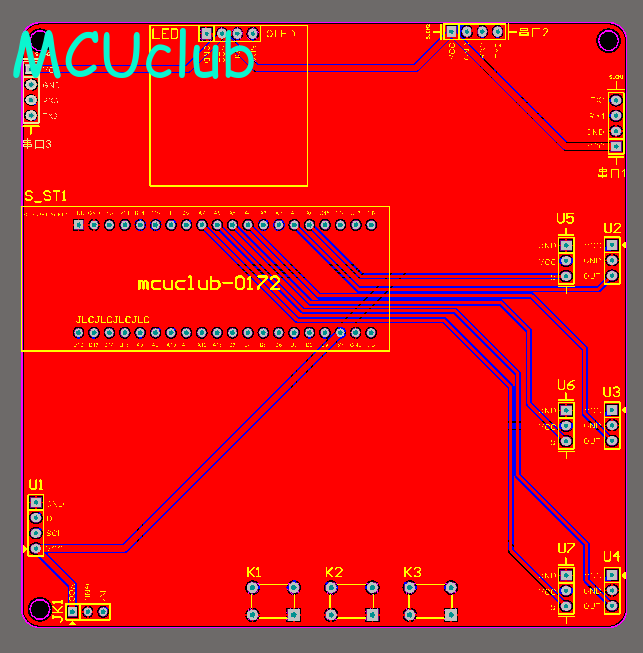 注意:PCB图中间有一个项目编号,隐藏在单片机底座下,插入单片机后不会看到。如果想截没有项目编号的PCB图,可在PCB源文件中点击删除。另外,如果想在实物PCB板上加自己的信息(比如日期、学号、姓名等),可联系客服。