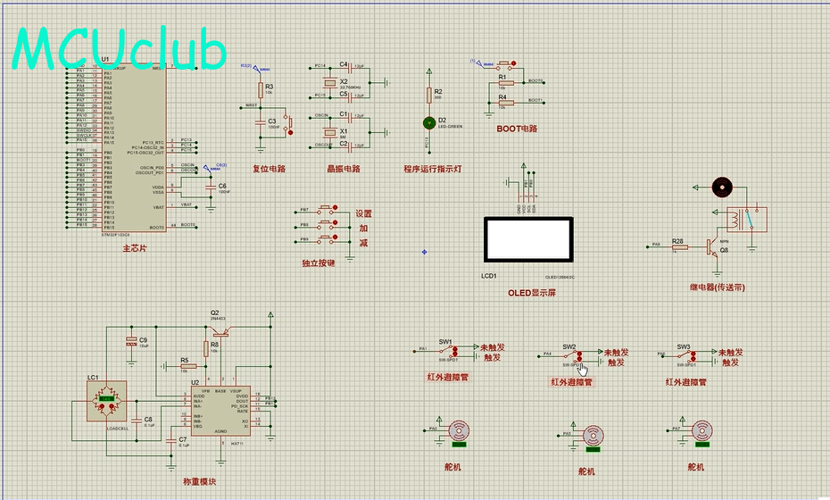注意:部分实物元器件仿真中没有,仿真中会用其他工作原理相似的元件代替,这样可能导致实物程序和仿真程序不一样