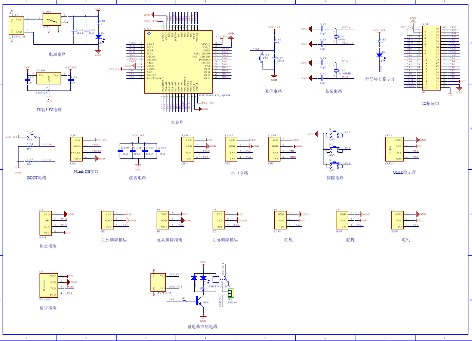 PCB图是由原理图导出,封装很大一部分都是作者自己绘制,不提供封装库,只提供连接好的源文件,可以直接在嘉立创进行打板。两层板,上下覆铜接地。