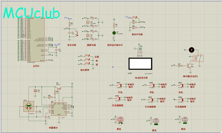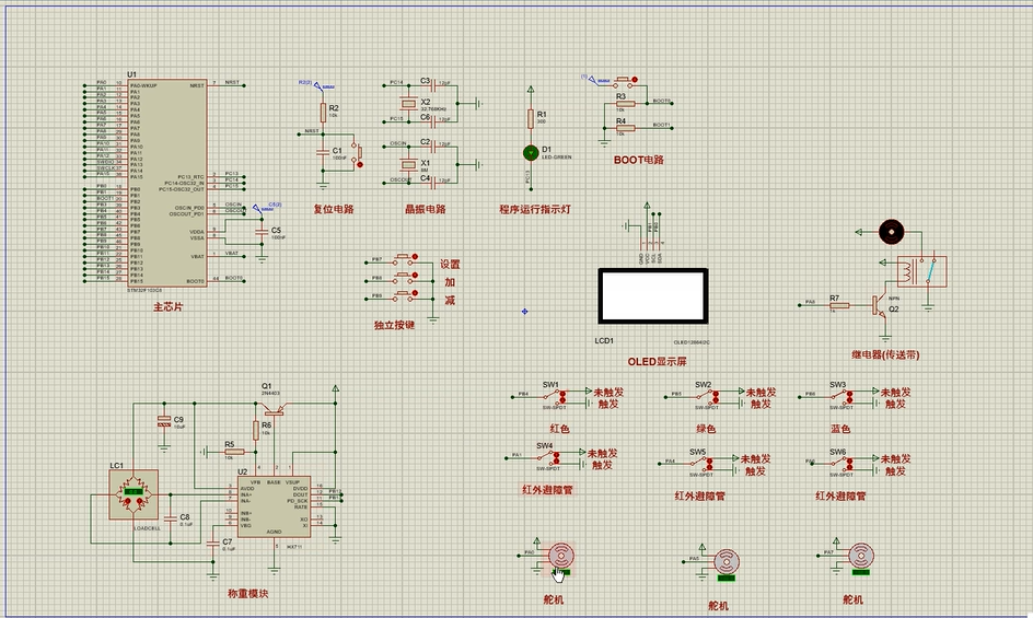 注意:部分实物元器件仿真中没有,仿真中会用其他工作原理相似的元件代替,这样可能导致实物程序和仿真程序不一样