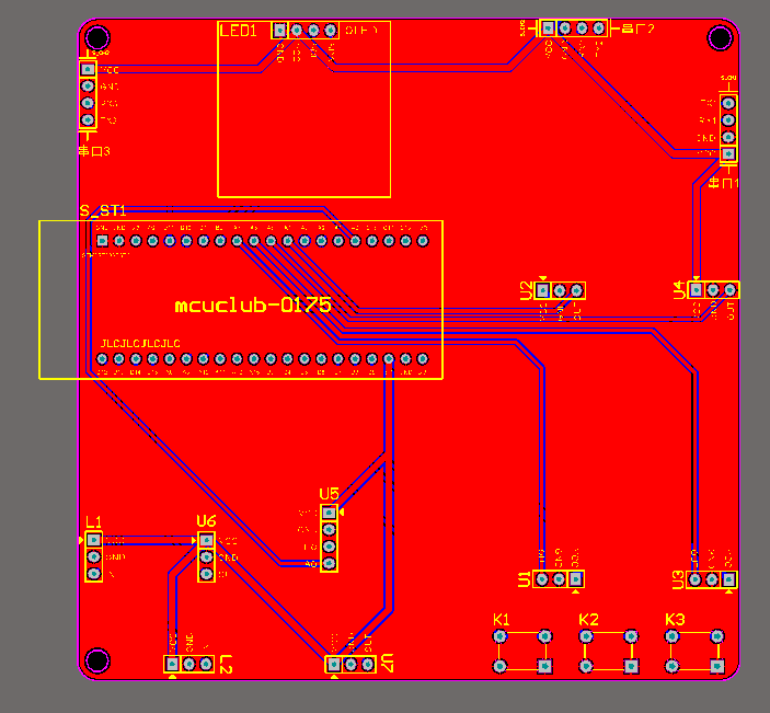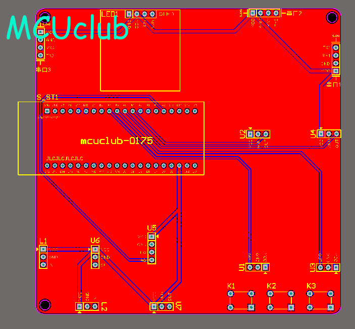 PCB图是由原理图导出,封装很大一部分都是作者自己绘制,不提供封装库,只提供连接好的源文件,可以直接在嘉立创进行打板。两层板,上下覆铜接地。