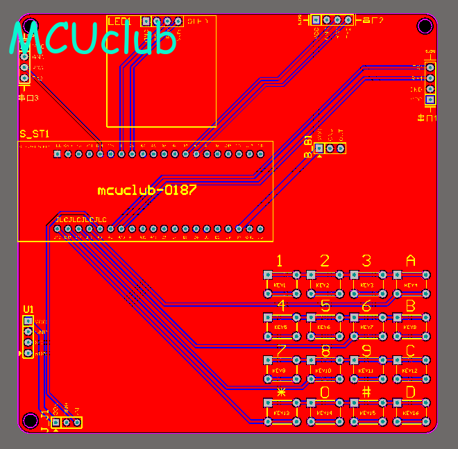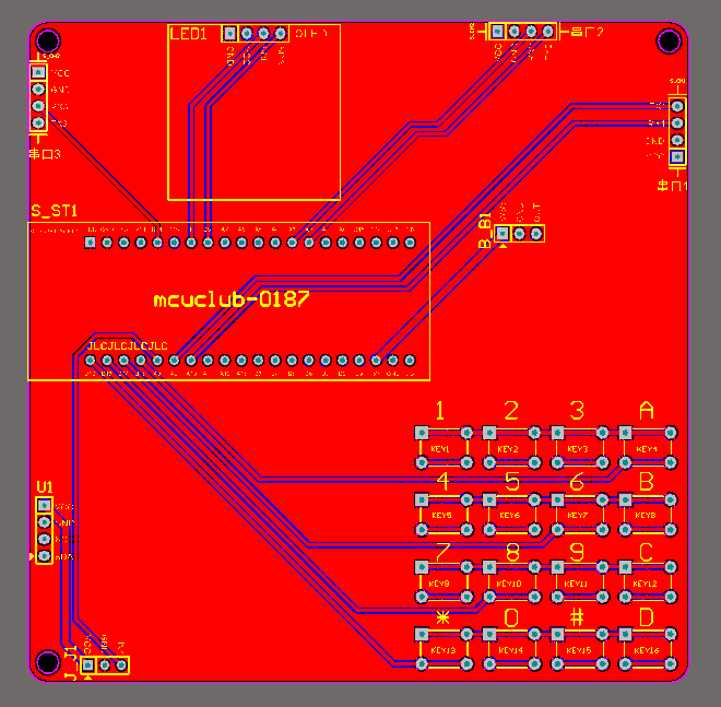 注意:PCB图中间有一个项目编号,隐藏在单片机底座下,插入单片机后不会看到。如果想截没有项目编号的PCB图,可在PCB源文件中点击删除。另外,如果想在实物PCB板上加自己的信息(比如日期、学号、姓名等),可联系客服。