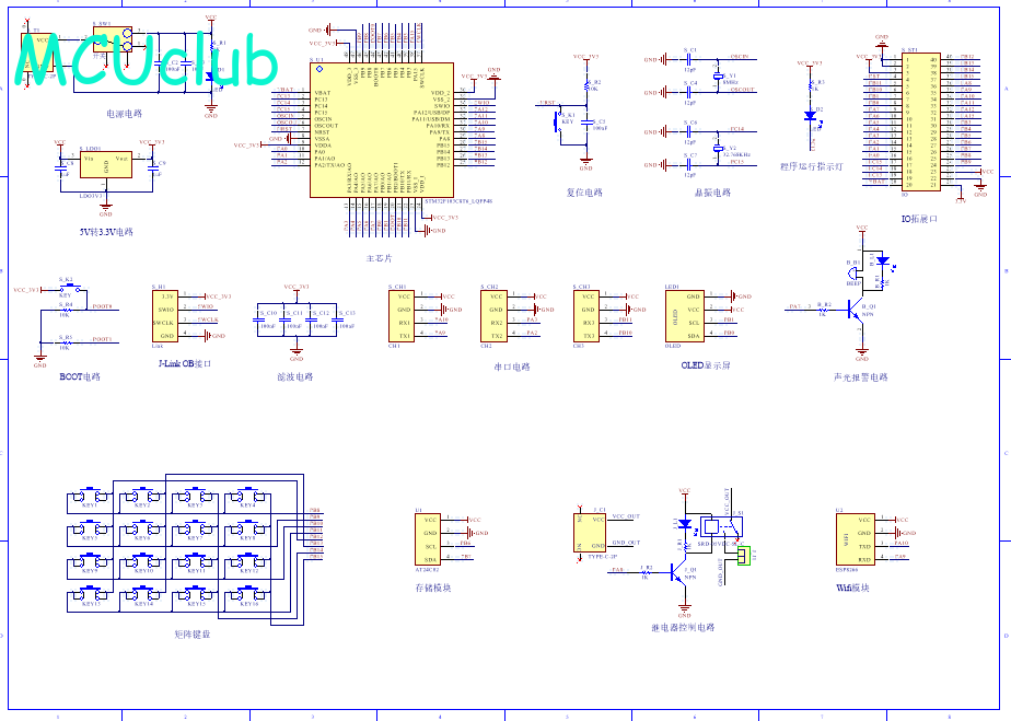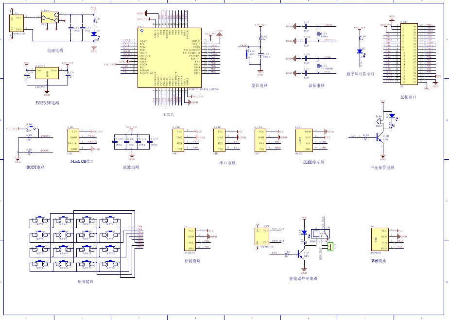 PCB图是由原理图导出,封装很大一部分都是作者自己绘制,不提供封装库,只提供连接好的源文件,可以直接在嘉立创进行打板。两层板,上下覆铜接地。