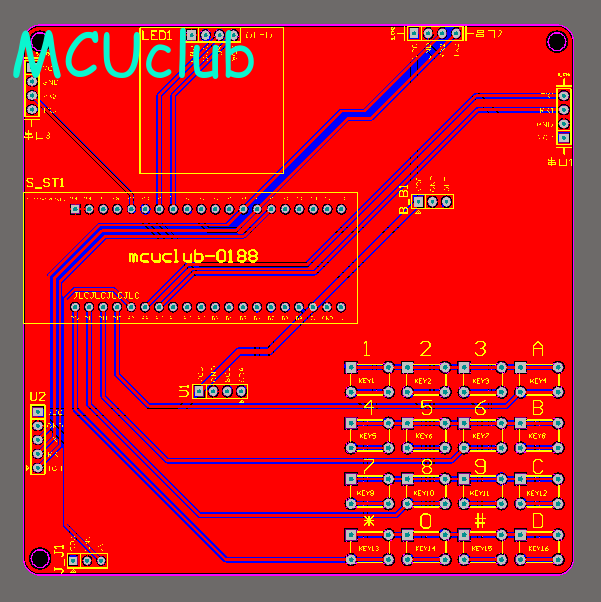注意:PCB图中间有一个项目编号,隐藏在单片机底座下,插入单片机后不会看到。如果想截没有项目编号的PCB图,可在PCB源文件中点击删除。另外,如果想在实物PCB板上加自己的信息(比如日期、学号、姓名等),可联系客服。