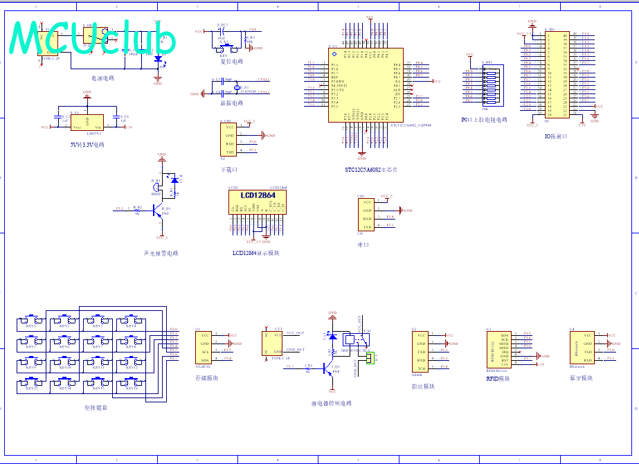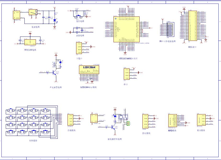 1、通过4*4的矩阵键盘中的0-9为数字键,*为删除键,#为确定键,A为功能键,B为向上选择键,C为向下选择健,D为功能确认健