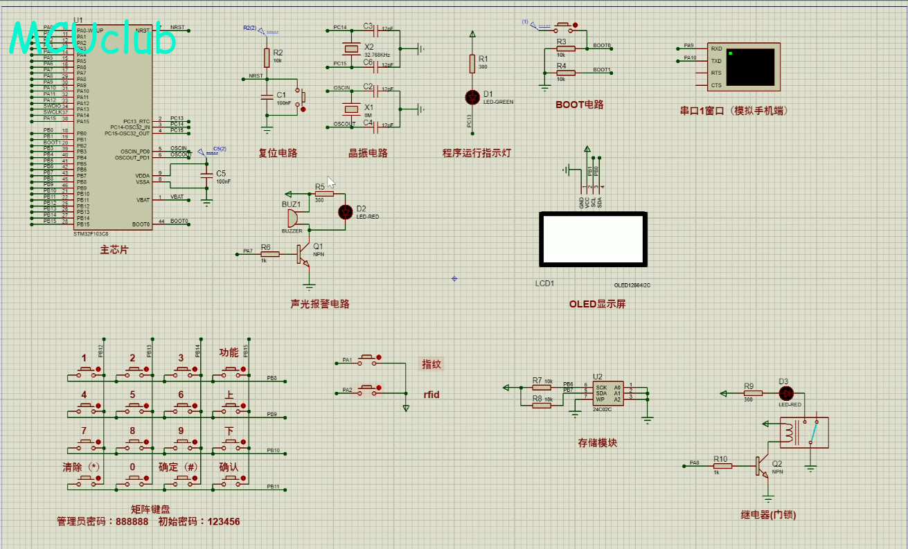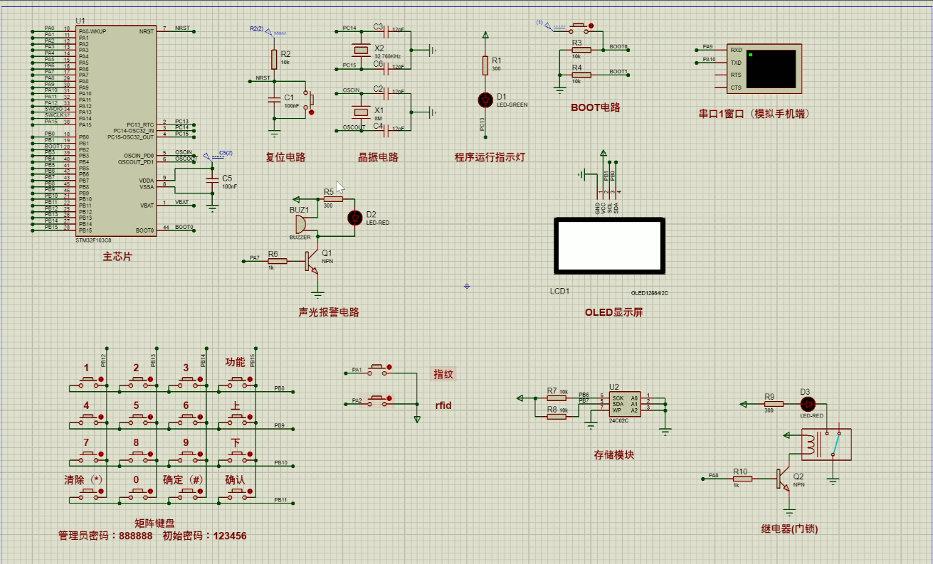11、通过OLED显示屏显示输入的密码(*号表示,防止被偷看),另外,输入密码可以前后加入扰乱码,只要包含正确密码即可
