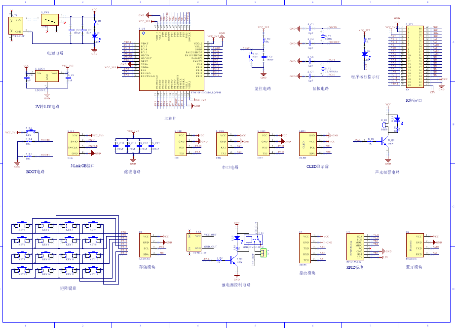 PCB图是由原理图导出,封装很大一部分都是作者自己绘制,不提供封装库,只提供连接好的源文件,可以直接在嘉立创进行打板。两层板,上下覆铜接地。