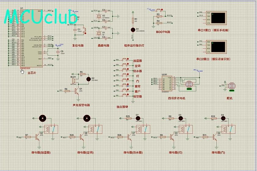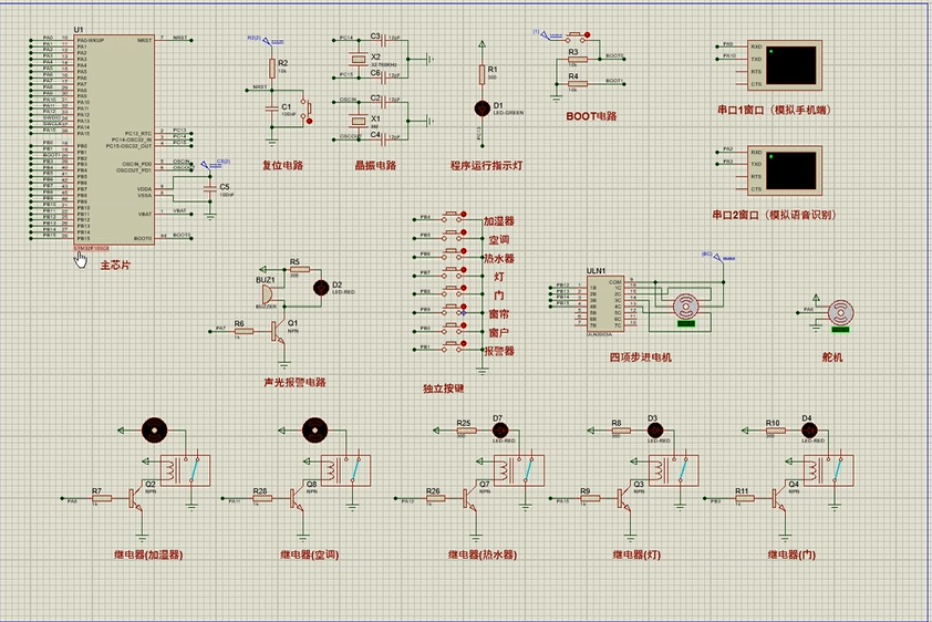 2、通过继电器来控制加湿器,空调(制冷片),热水器(加热片),灯,门;