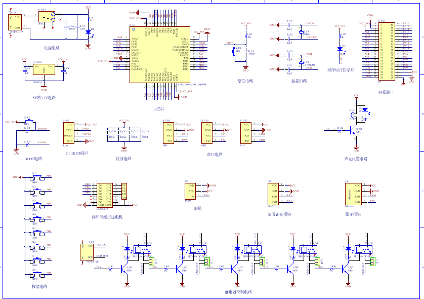 PCB图是由原理图导出,封装很大一部分都是作者自己绘制,不提供封装库,只提供连接好的源文件,可以直接在嘉立创进行打板。两层板,上下覆铜接地。