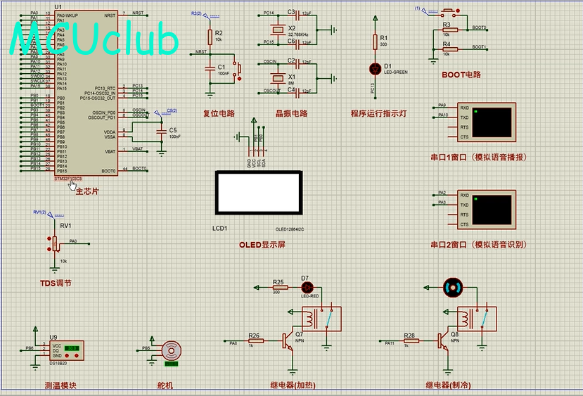 注意:部分实物元器件仿真中没有,仿真中会用其他工作原理相似的元件代替,这样可能导致实物程序和仿真程序不一样