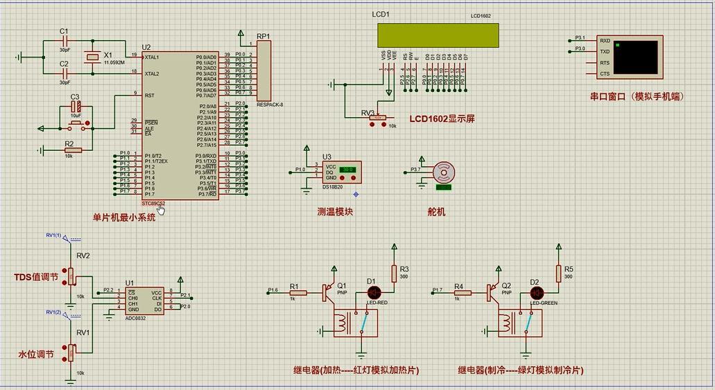 注意:部分实物元器件仿真中没有,仿真中会用其他工作原理相似的元件代替,这样可能导致实物程序和仿真程序不一样