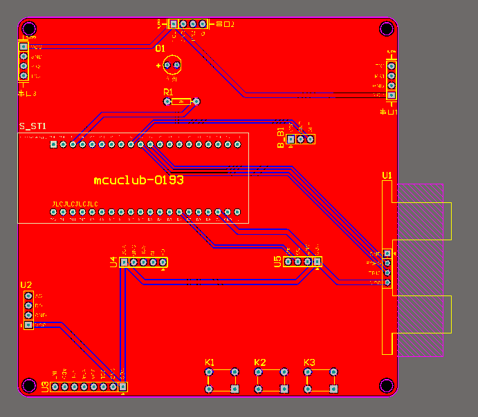 注意:PCB图中间有一个项目编号,隐藏在单片机底座下,插入单片机后不会看到。如果想截没有项目编号的PCB图,可在PCB源文件中点击删除。另外,如果想在实物PCB板上加自己的信息(比如日期、学号、姓名等),可联系客服。