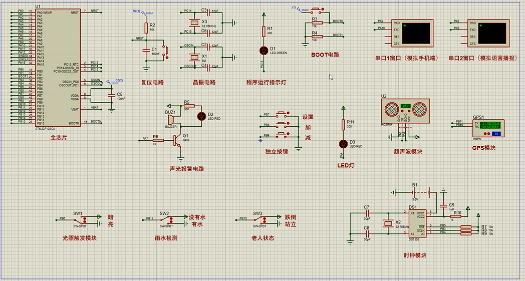 注意:部分实物元器件仿真中没有,仿真中会用其他工作原理相似的元件代替,这样可能导致实物程序和仿真程序不一样
