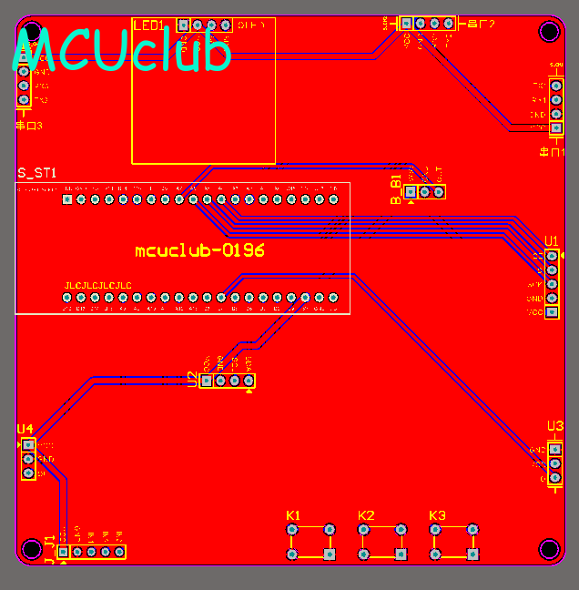 注意:PCB图中间有一个项目编号,隐藏在单片机底座下,插入单片机后不会看到。如果想截没有项目编号的PCB图,可在PCB源文件中点击删除。另外,如果想在实物PCB板上加自己的信息(比如日期、学号、姓名等),可联系客服。