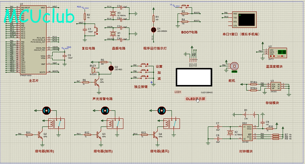 注意:部分实物元器件仿真中没有,仿真中会用其他工作原理相似的元件代替,这样可能导致实物程序和仿真程序不一样