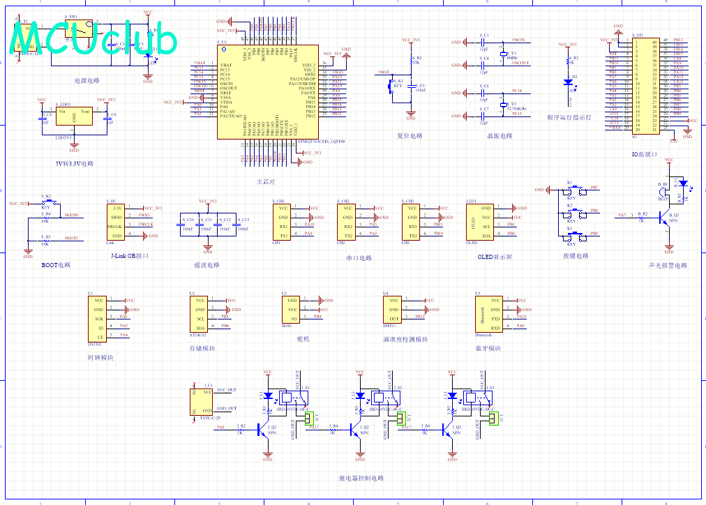 PCB图是由原理图导出,封装很大一部分都是作者自己绘制,不提供封装库,只提供连接好的源文件,可以直接在嘉立创进行打板。两层板,上下覆铜接地。