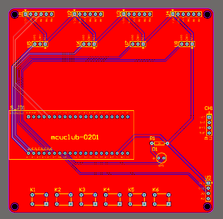 底板:底板在嘉立创进行打板,为绿色PCB板,两层板,厚度1.2,上下覆铜接地。元器件基本上为插针式,个别降压芯片会使用贴片式。