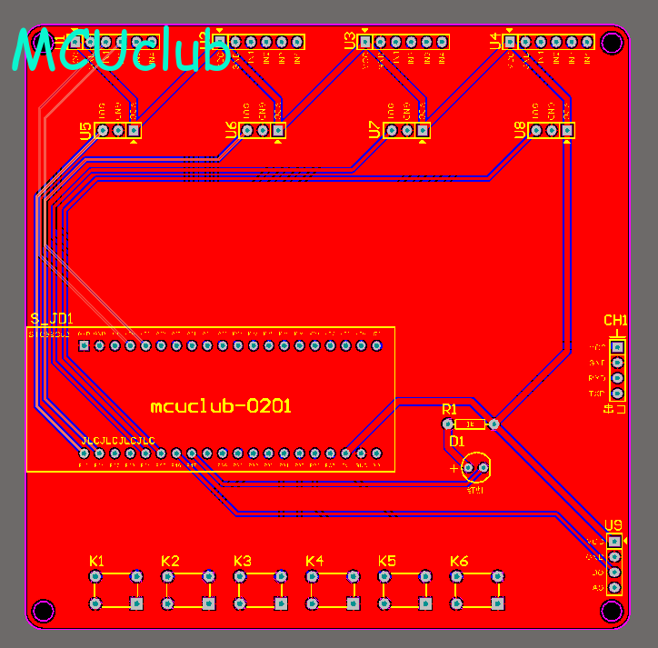 PCB图是由原理图导出,封装很大一部分都是作者自己绘制,不提供封装库,只提供连接好的源文件,可以直接在嘉立创进行打板。两层板,上下覆铜接地。