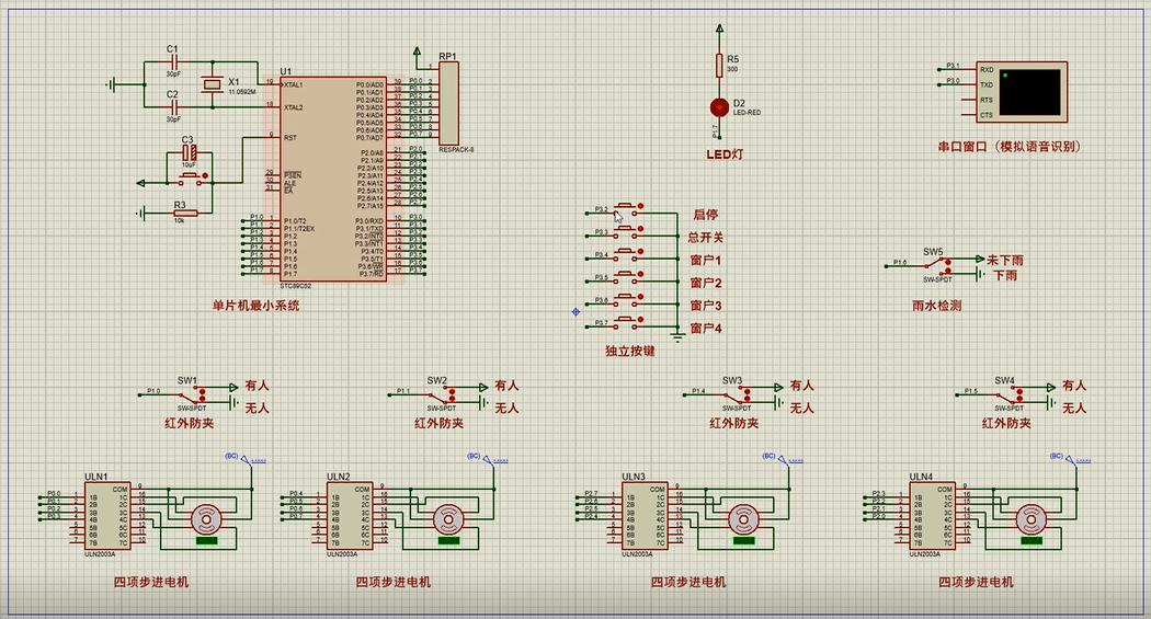 4、通过雨水检测模块检测是否下雨,当下雨时,自动关闭所有车窗