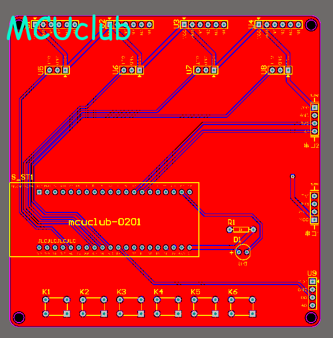 注意:PCB图中间有一个项目编号,隐藏在单片机底座下,插入单片机后不会看到。如果想截没有项目编号的PCB图,可在PCB源文件中点击删除。另外,如果想在实物PCB板上加自己的信息(比如日期、学号、姓名等),可联系客服。