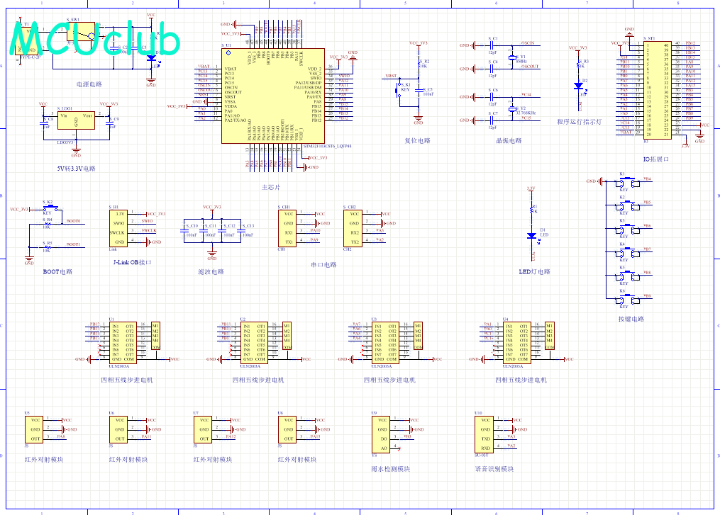 PCB图是由原理图导出,封装很大一部分都是作者自己绘制,不提供封装库,只提供连接好的源文件,可以直接在嘉立创进行打板。两层板,上下覆铜接地。