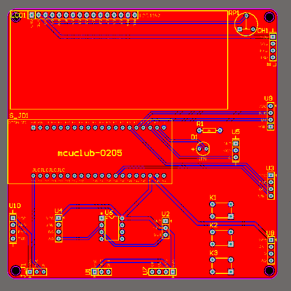 注意:PCB图中间有一个项目编号,隐藏在单片机底座下,插入单片机后不会看到。如果想截没有项目编号的PCB图,可在PCB源文件中点击删除。另外,如果想在实物PCB板上加自己的信息(比如日期、学号、姓名等),可联系客服。