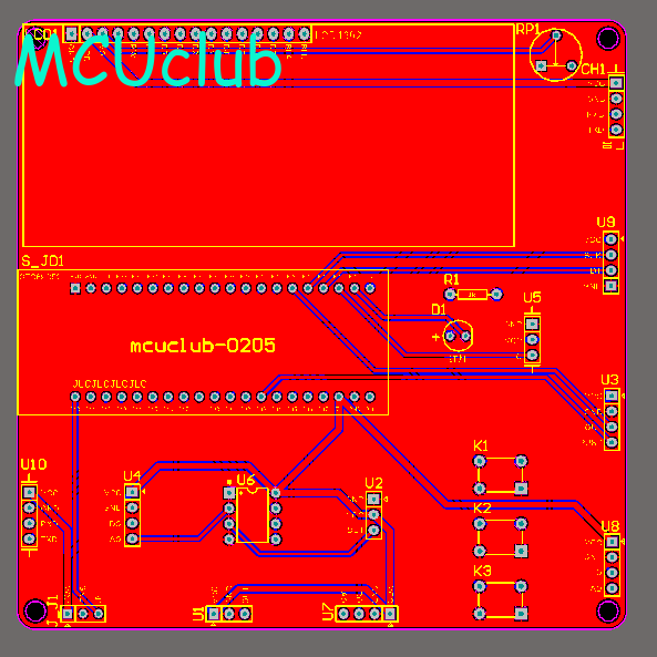 PCB图是由原理图导出,封装很大一部分都是作者自己绘制,不提供封装库,只提供连接好的源文件,可以直接在嘉立创进行打板。两层板,上下覆铜接地。